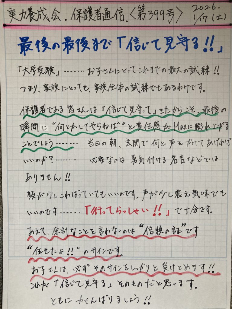 実力養成会通信 第3121号 ”最後の最後まで・・・” の巻 - 2026/1/17