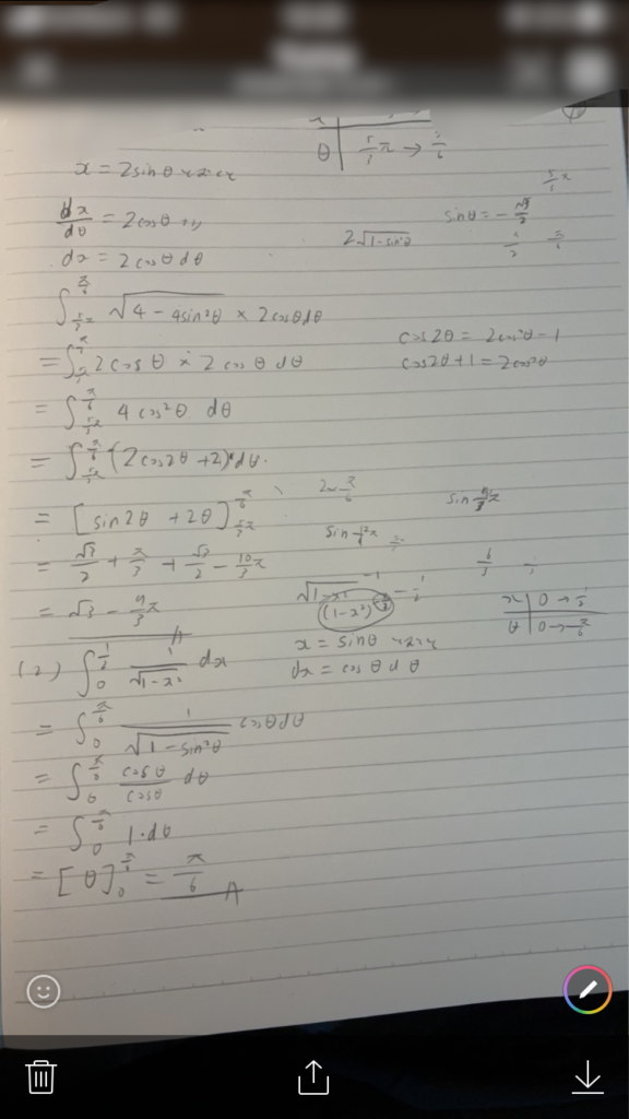 昨日は『置換積分』を学習しました。