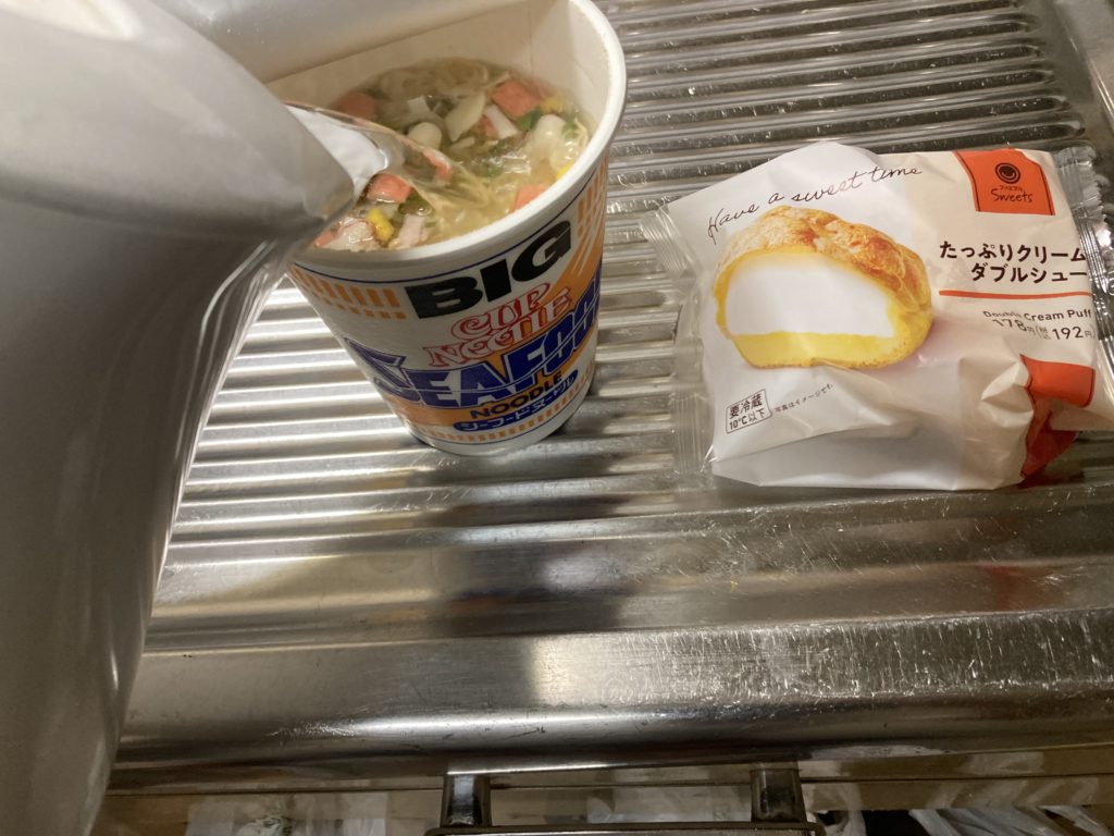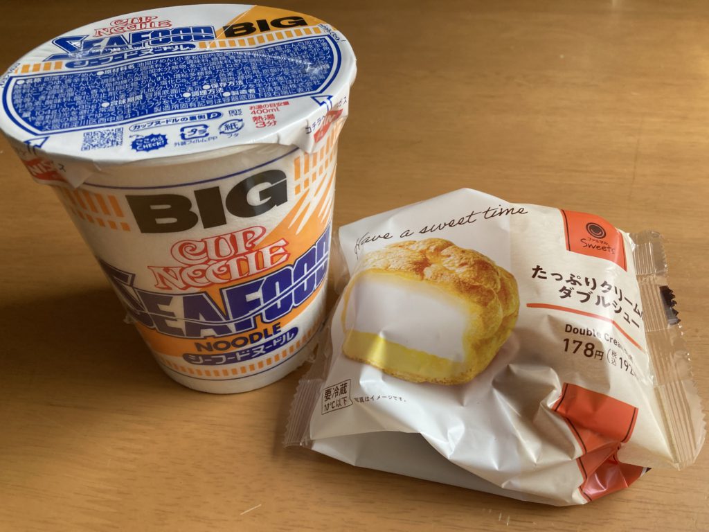 まさかの”シーフードヌードル”と”シュークリーム”の組合せ(笑)