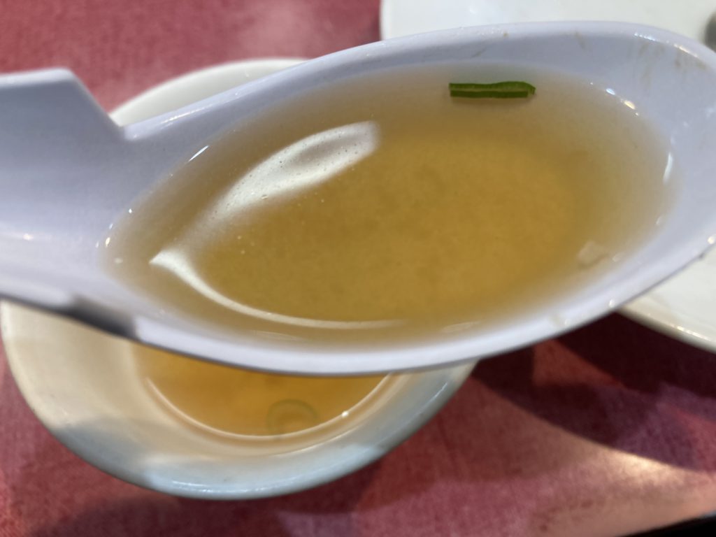 添えられた中華スープも絶品!! 1964年の開業当初から変わらぬスープです。