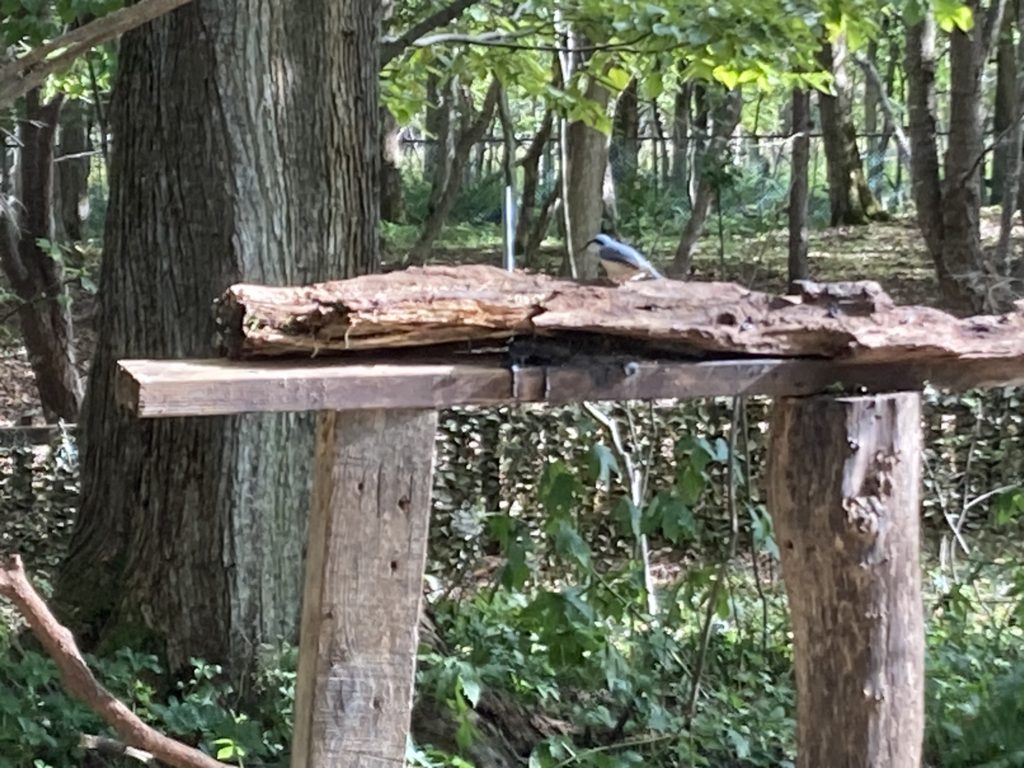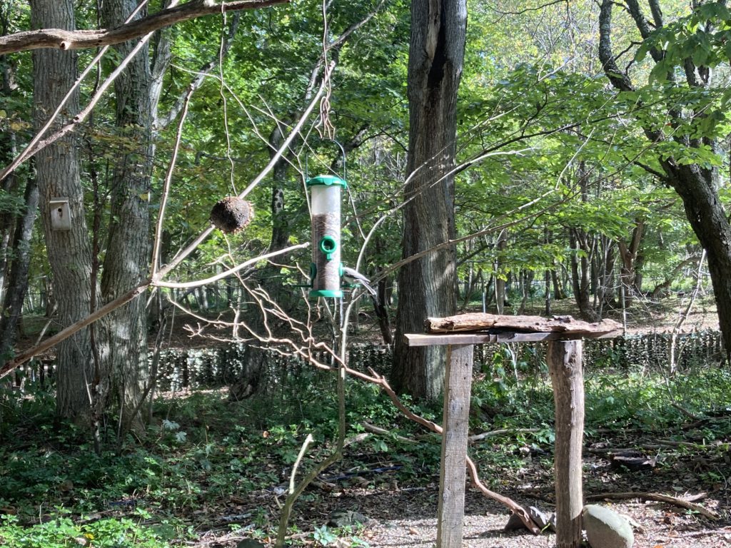 大きな窓越しの向こうには餌台があります。