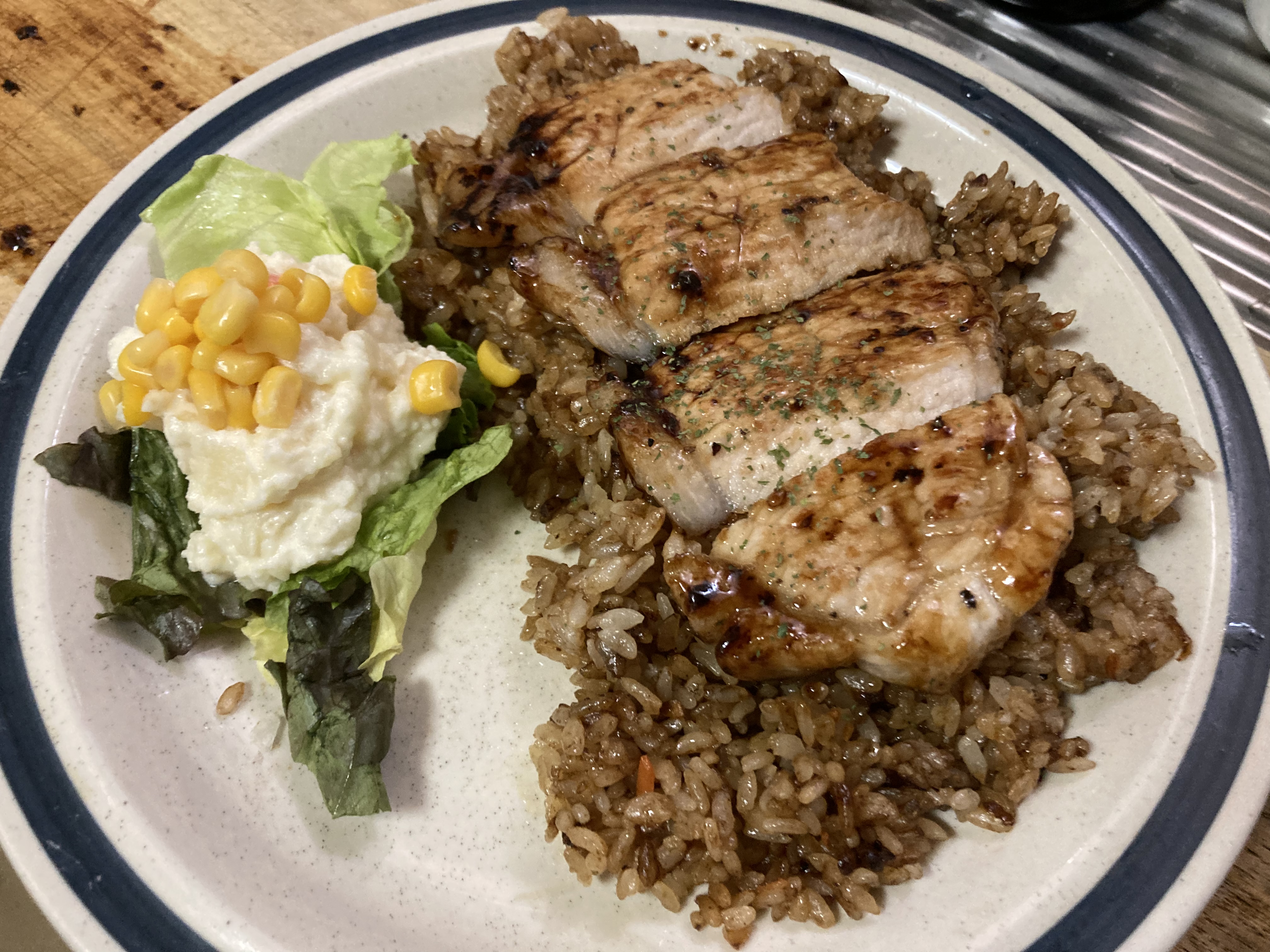 ステーキソースとガーリックライス、バターとガーリックがまだ足りないか?