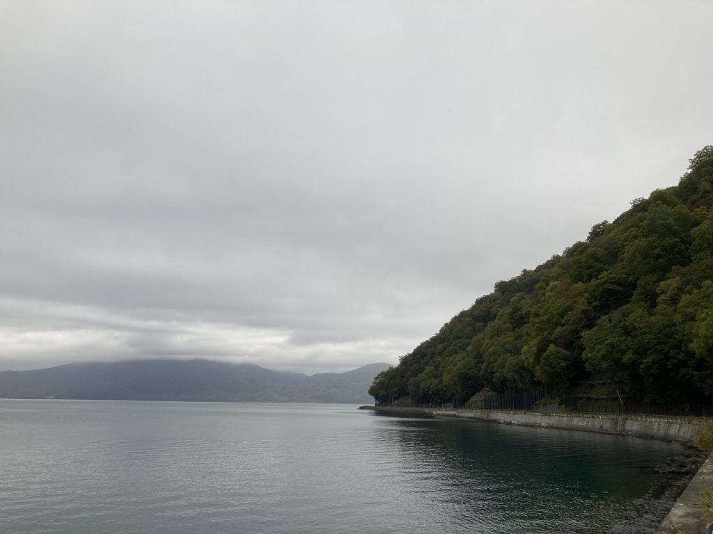 鉛色の雲が湖面に反射してる・・・・