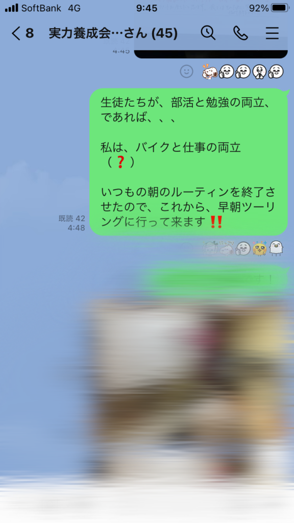 その日は、早朝ツーリングに行くため、午前4時48分に保護者通信を一斉送信しました。