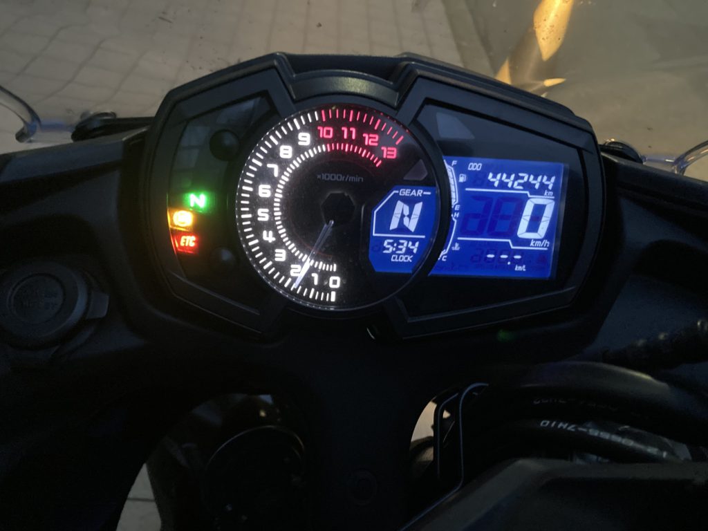 パラツイン搭載のミドルスポーツは、大型バイクとしては軽量な部類だが、押し歩くとな
