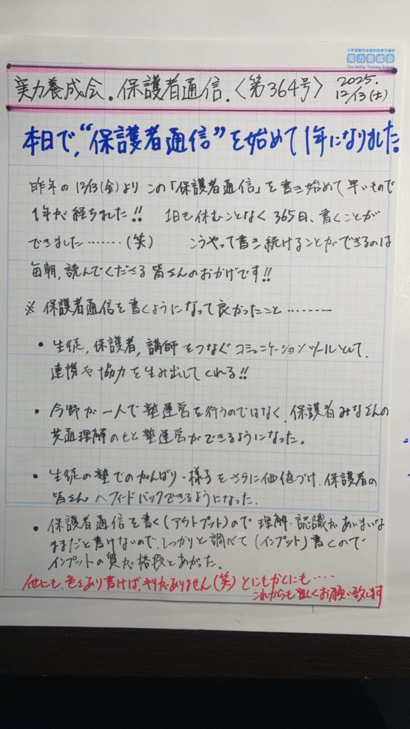 『保護者通信』を書き始め、昨日でちょうど1年!!