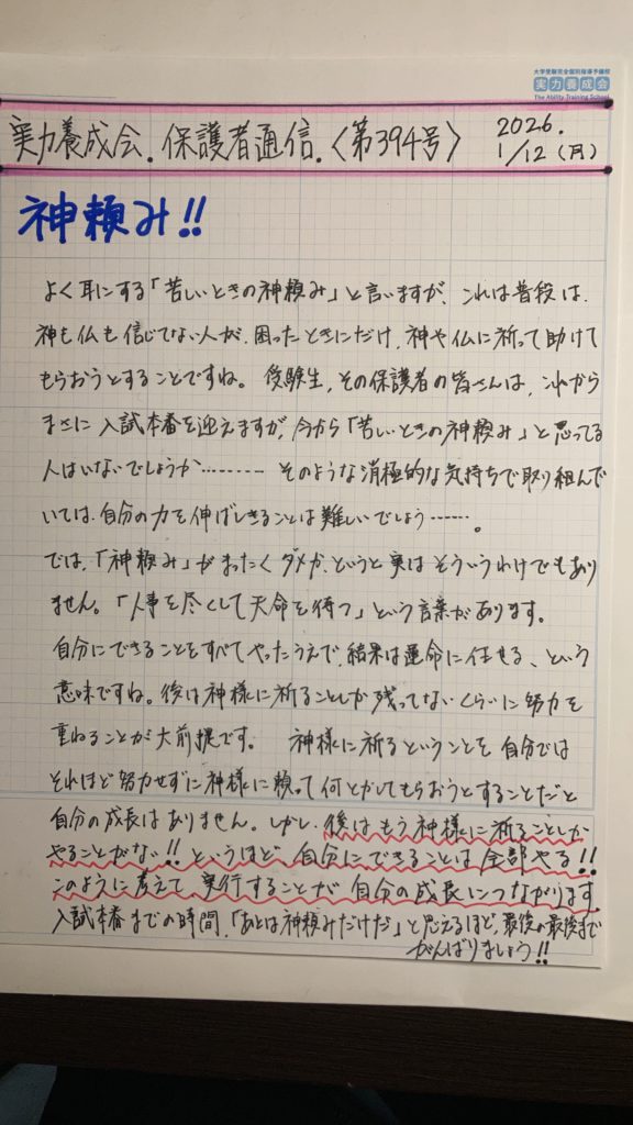 と、言うことで『昨日の保護者通信』をご紹介させていただきます。