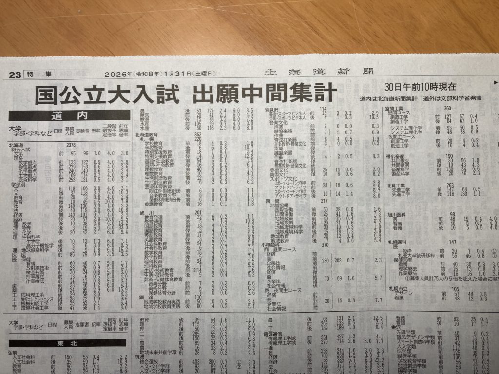さて・・・昨日、国公立大学の中間集計倍率が発表されました。