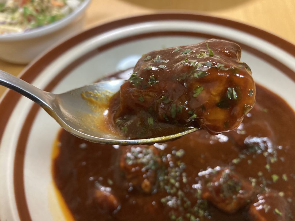 牛肉の塊が惜しげもなく、ゴロン、ゴロンと入ってます。