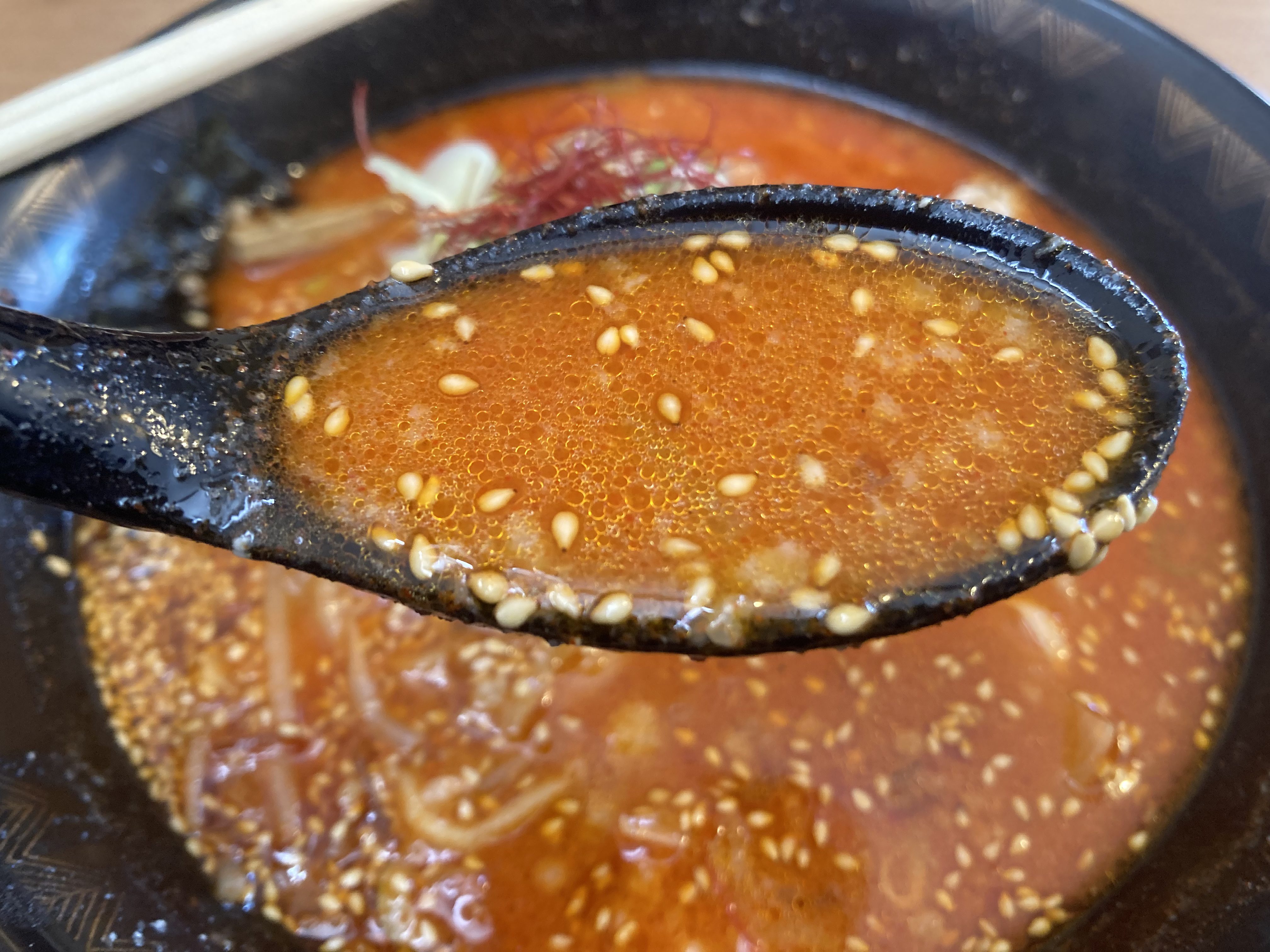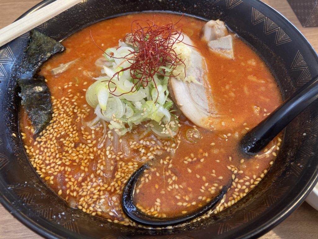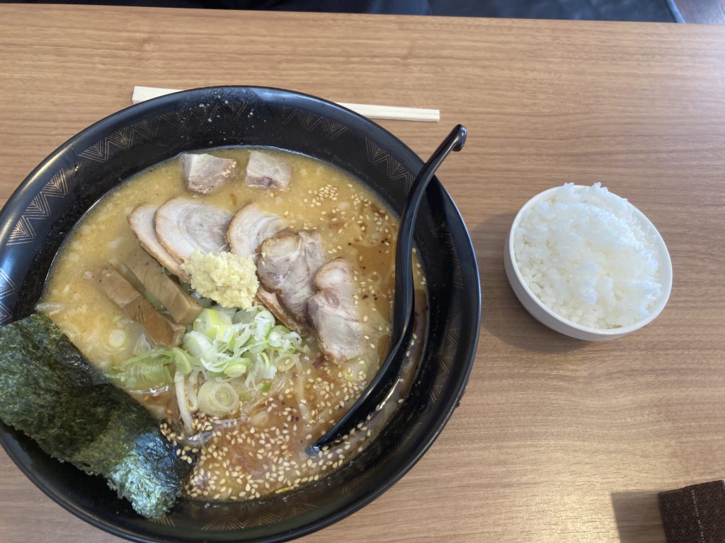 豚骨の旨味を凝縮した白湯スープに焙煎味噌の香りとコク、そして程よい辛さがとてもい
