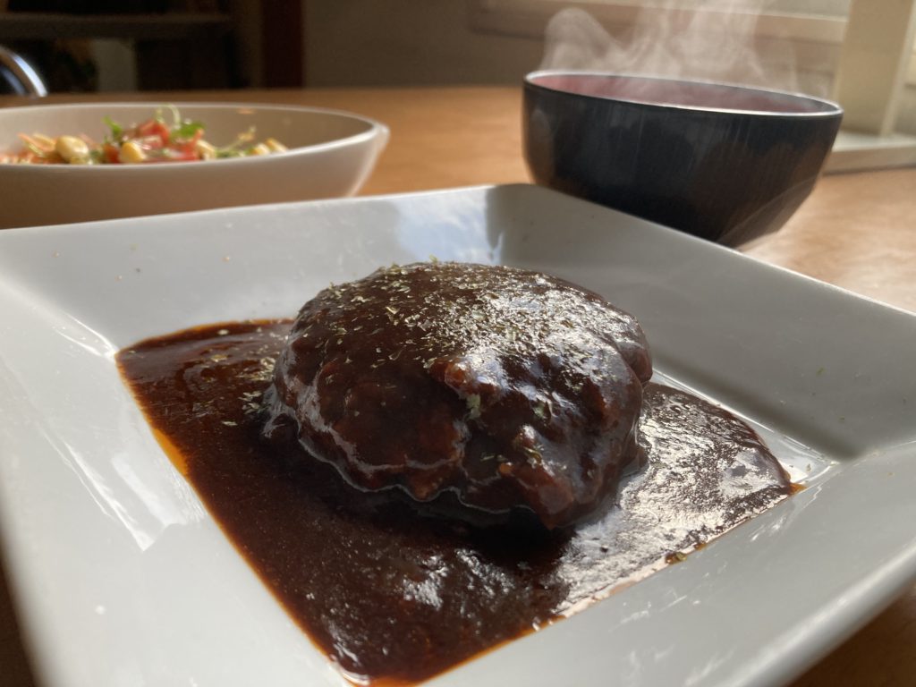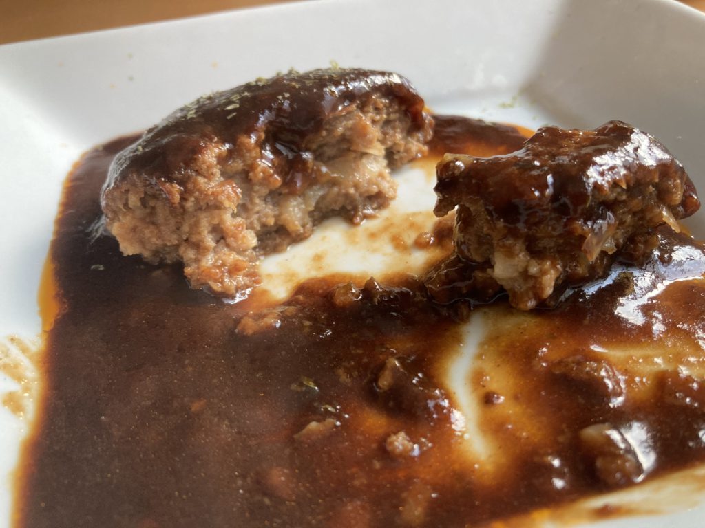 まさにオーブンでじっくり焼き上げた牛・鶏・豚合挽き肉のジューシーすぎるハンバーグ