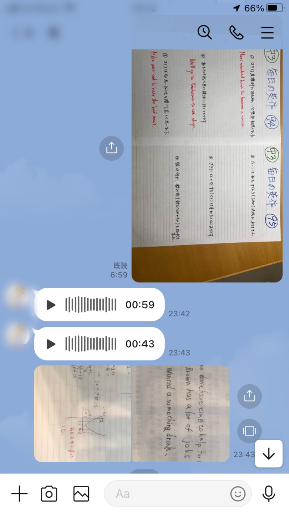 その日にやった学習は、都度、このような形で画像で報告してもらってます・・・