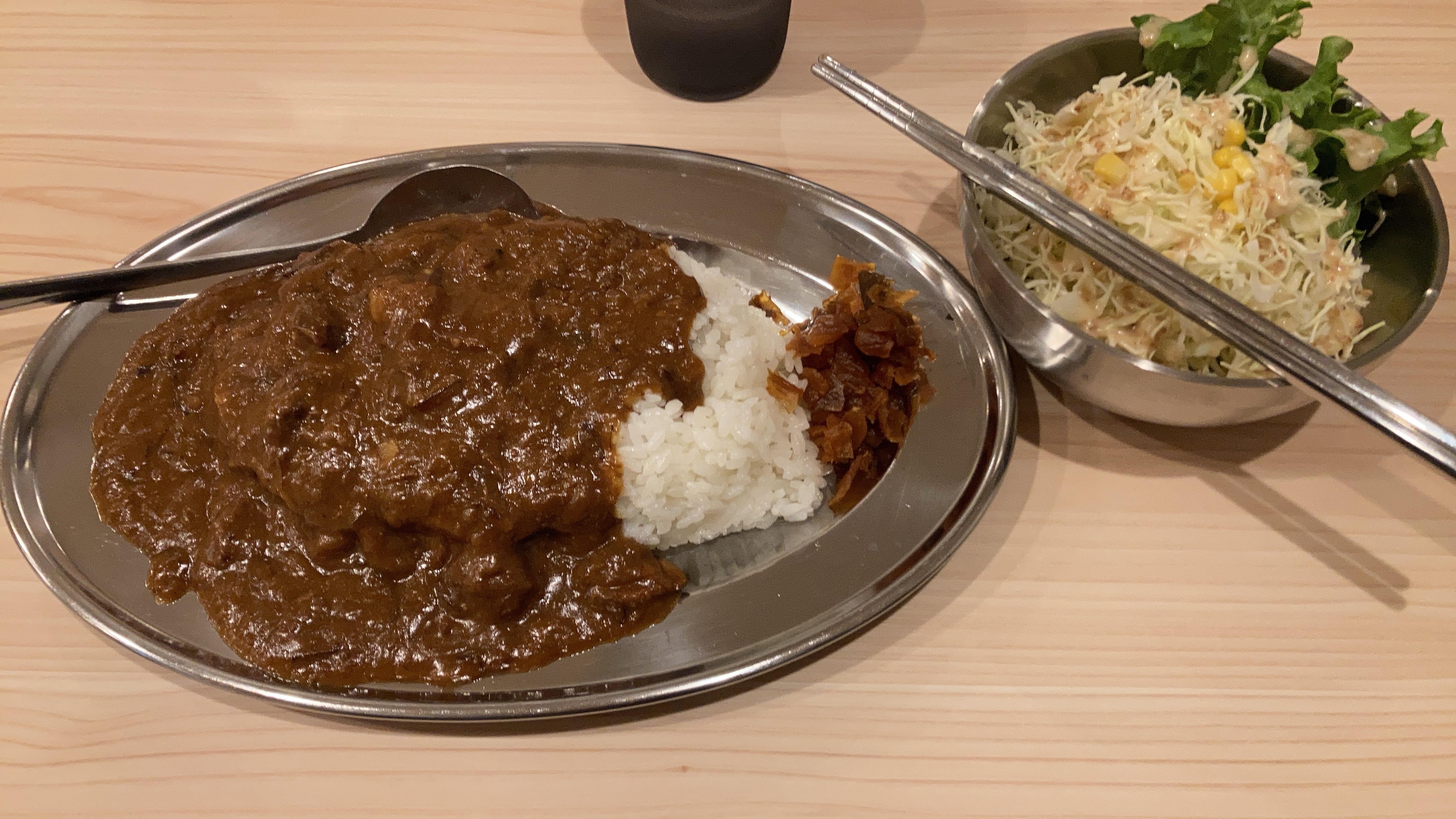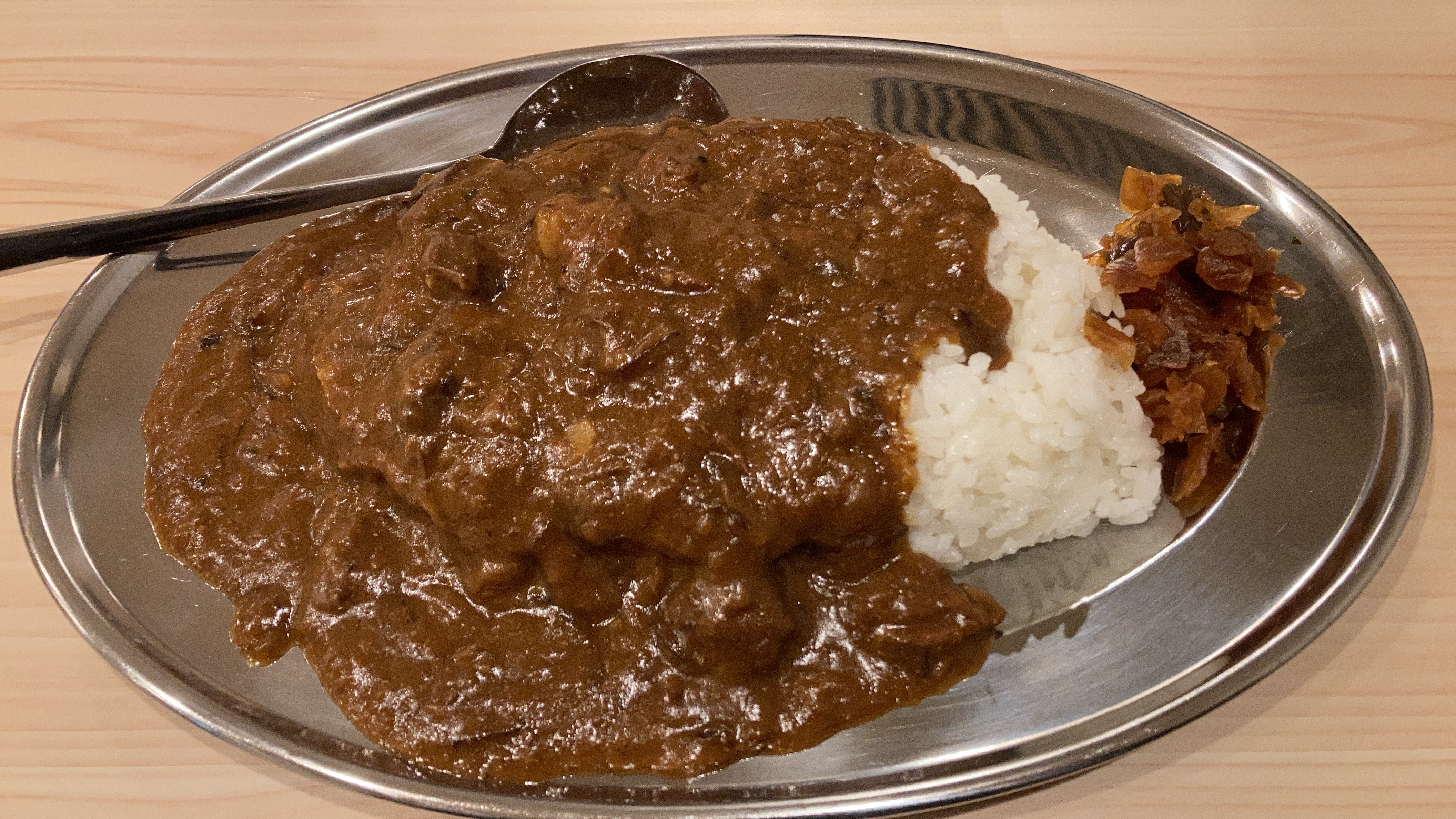 銀皿に盛られた濃厚カレー・・・・どことなくインデアンカレーを彷彿させます(笑)