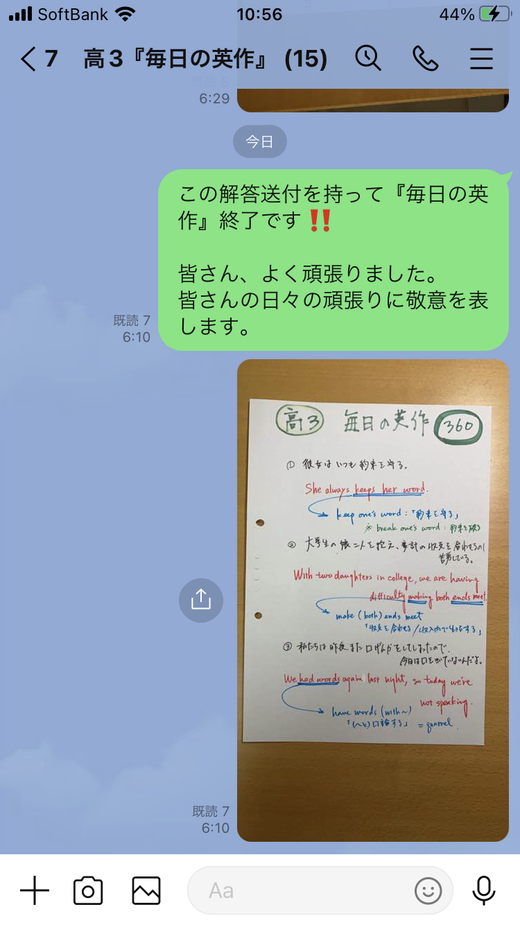 さて・・・昨年3月1日よりスタートした『毎日の英作』(高3生+本科生 グループ)は、