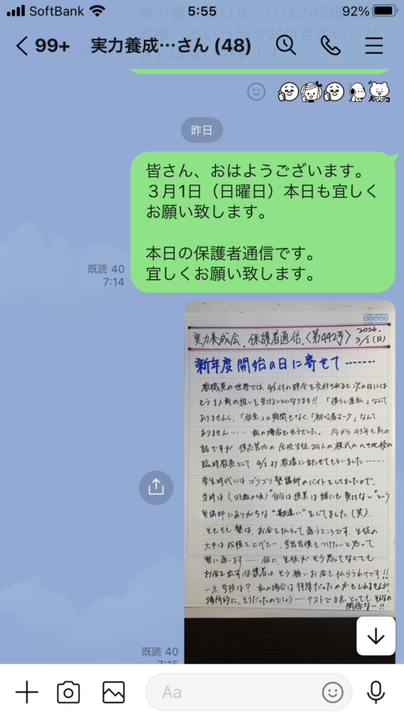 と、いうことで昨日の『保護者通信』をご紹介させていただきます。