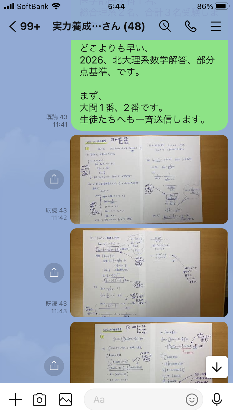 河合塾が北大速報をアップしたのがこの日の夜でした。