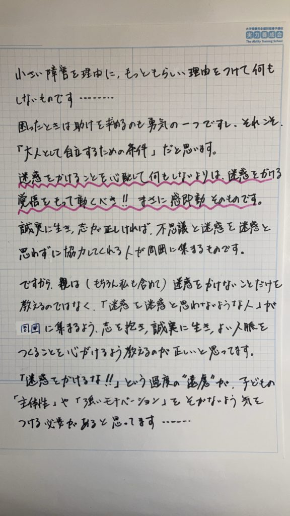 実力養成会通信 第3170号 ”ある中3生の行動” の巻