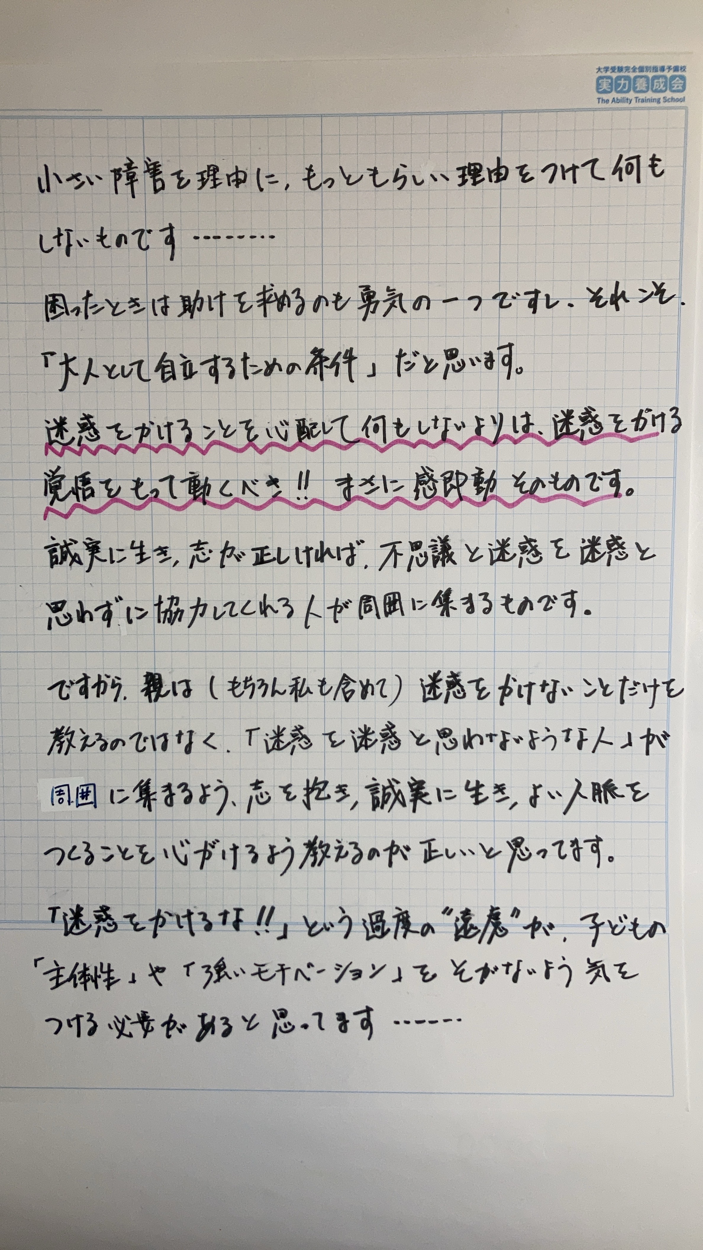 ★『人に迷惑をかけるな』より『役に立て』/昨日の保護者通信より