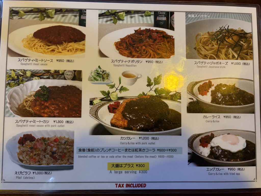 これぞ、昭和の喫茶店、鉄板メニューがずらり!!