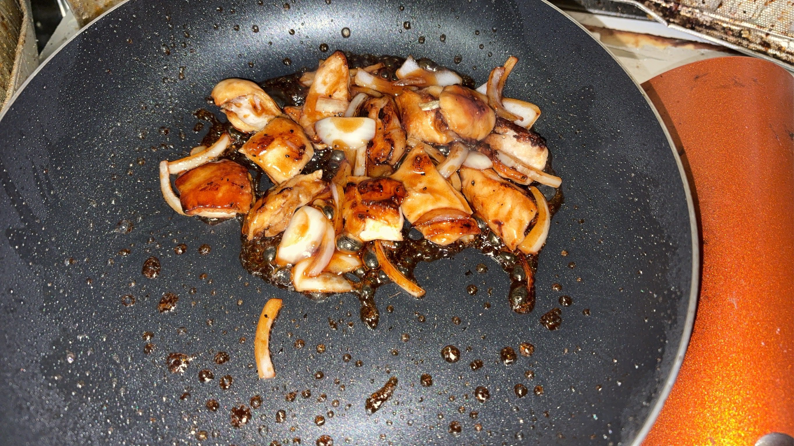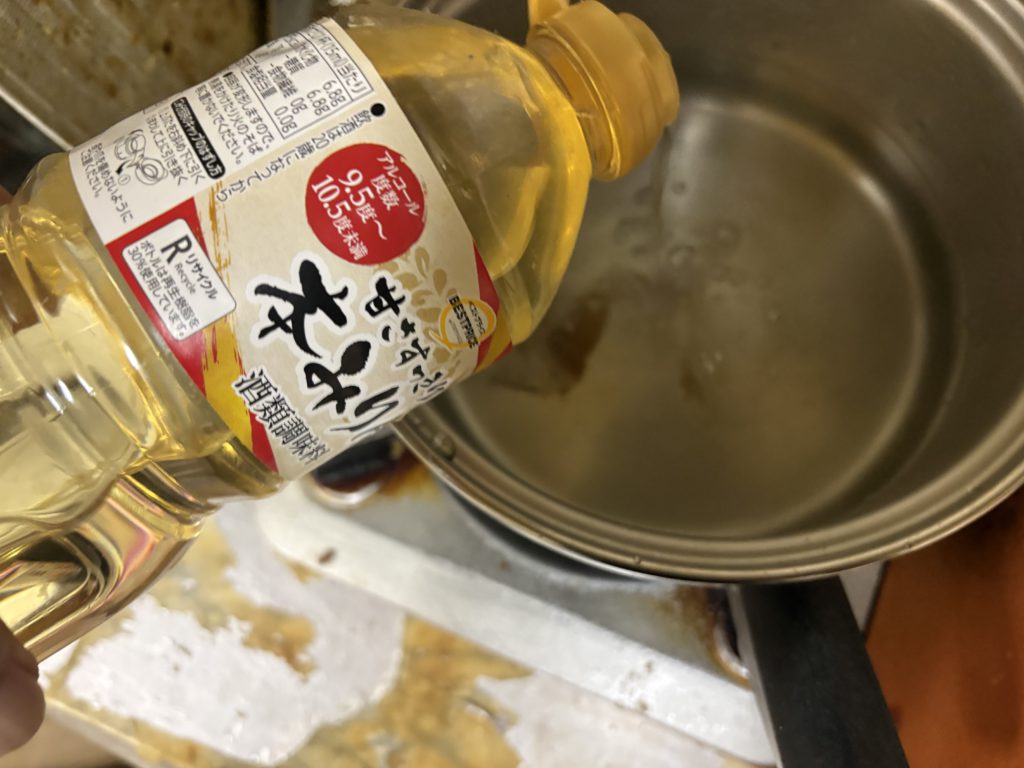 料理酒、みりん、砂糖を加えて1分半、茹でます!!