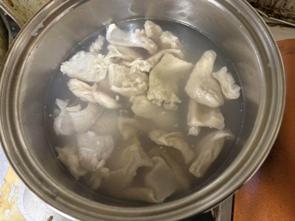 臭みが取れて、そして炒める時、プリプリに仕上がります。