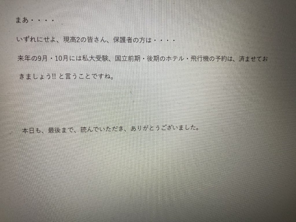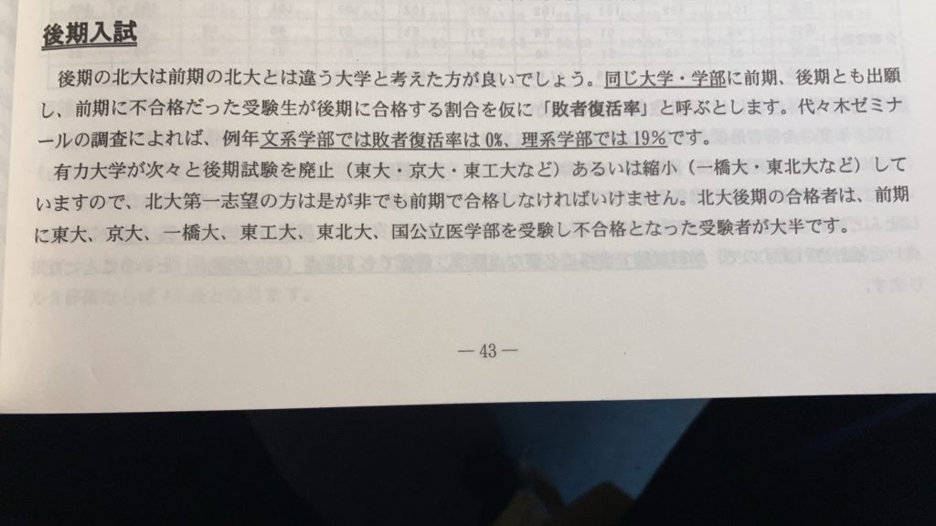 北嶺の進路だより『目指すなら高い嶺』にも、北大後期がいかに難しいか? ということ