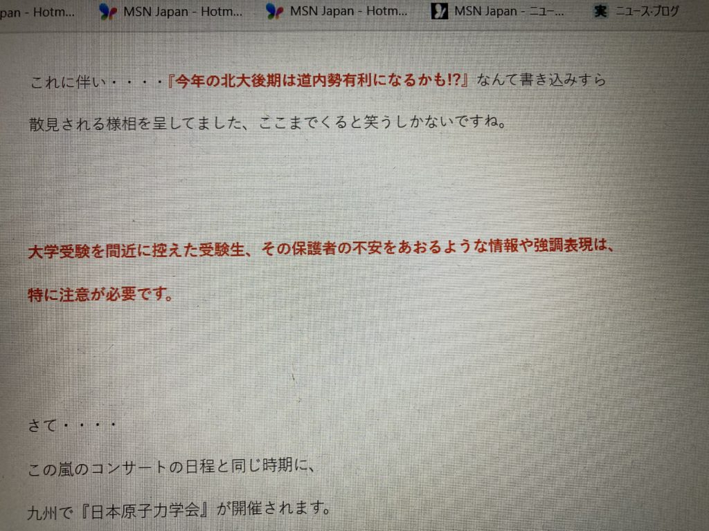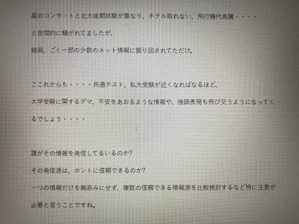 大学受験情報に関するデマ、不安をあおるような情報・・・・