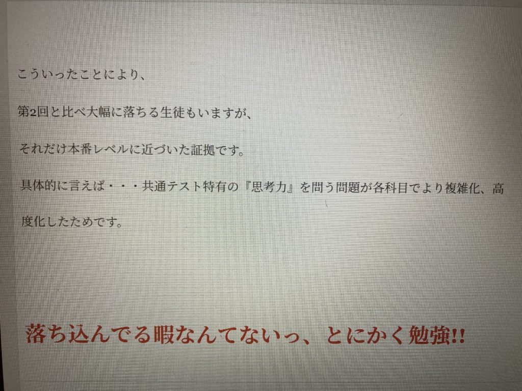 さて・・・河合第3回全統共通テストマーク模試成績表が返却され始めてます!!
