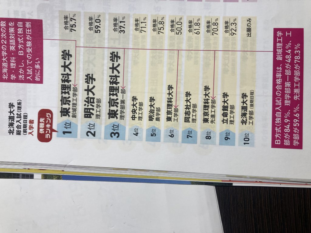 あくまでも・・・北大総合理系合格者の併願先ですが・・・・