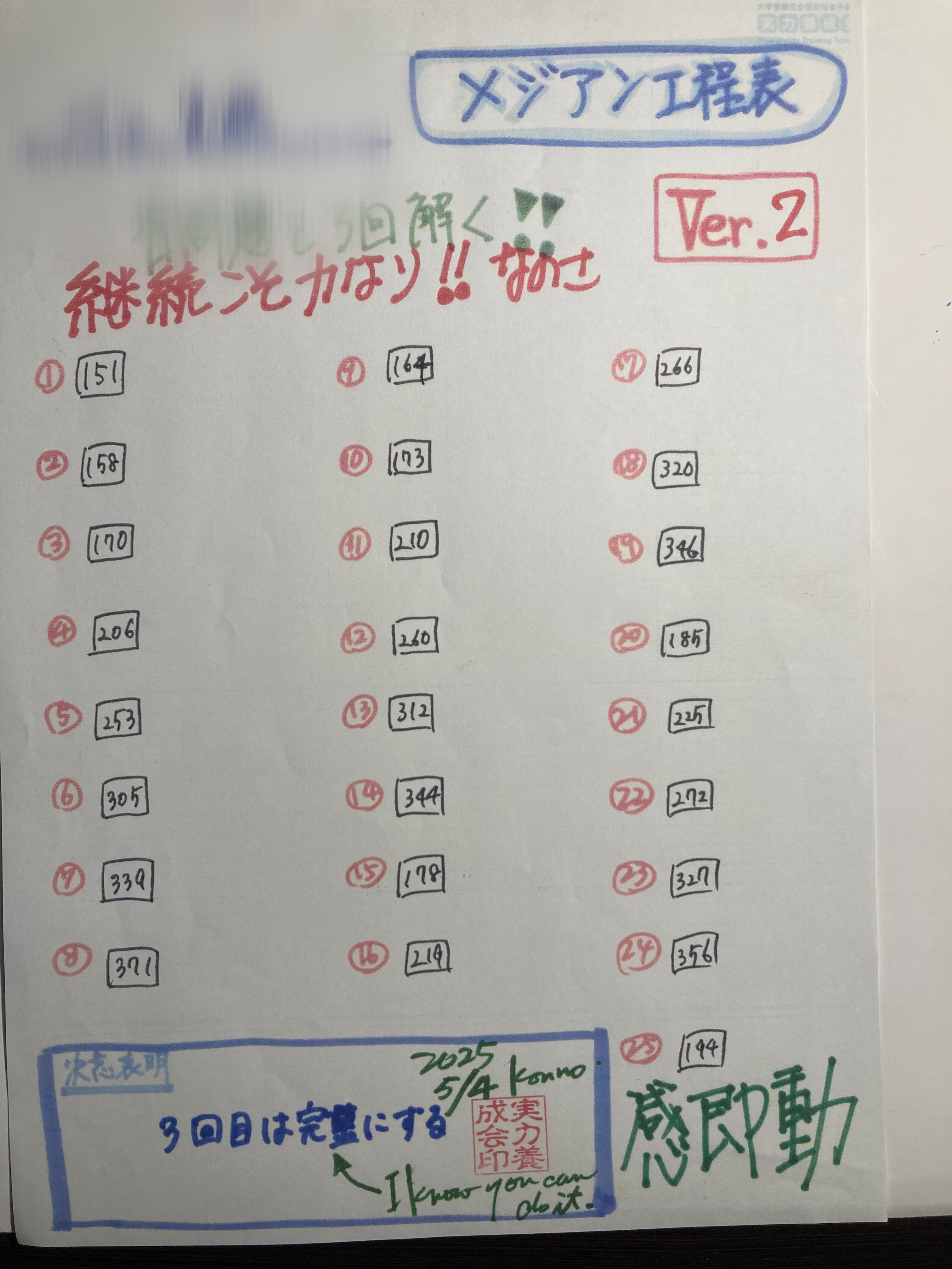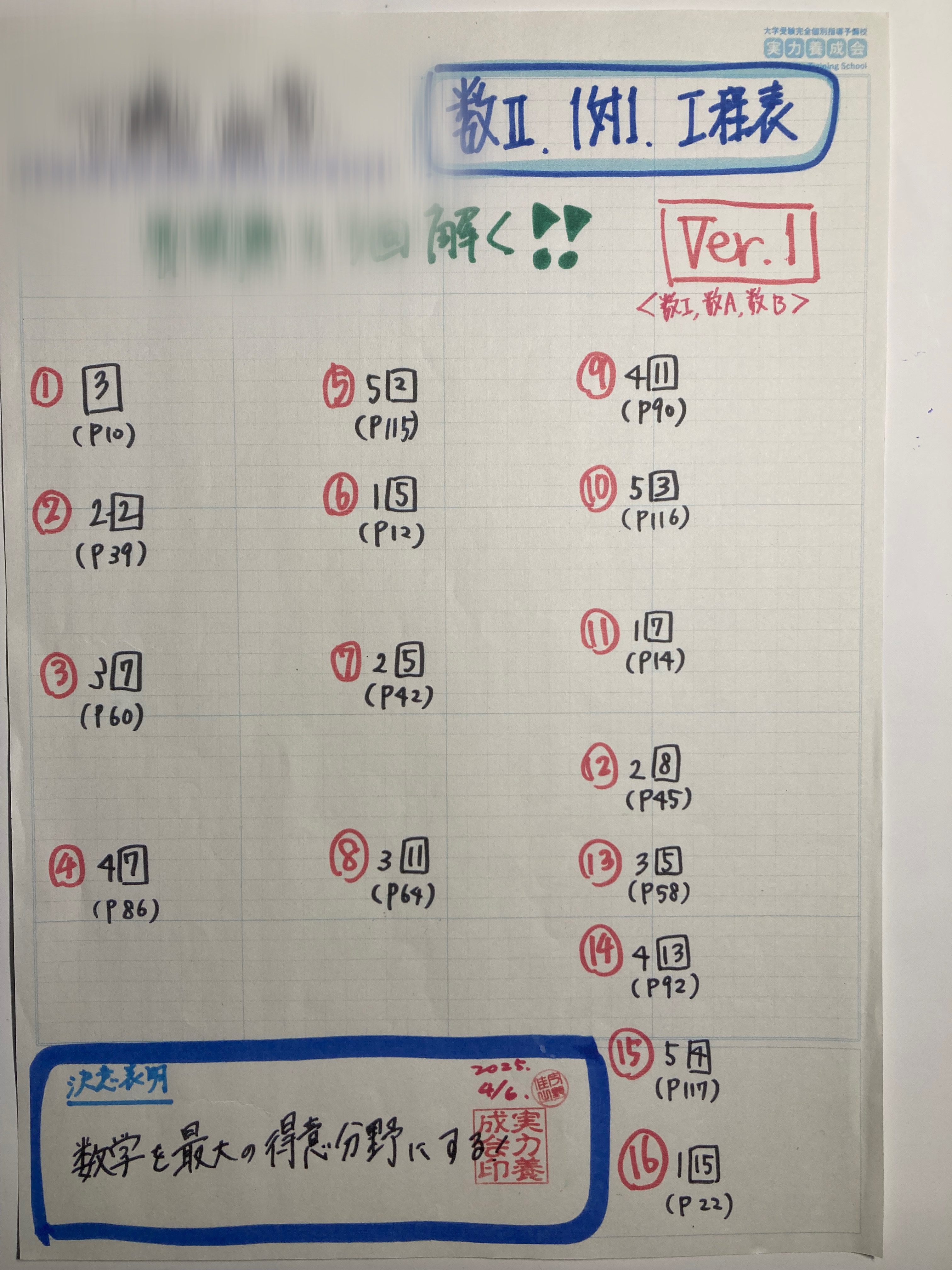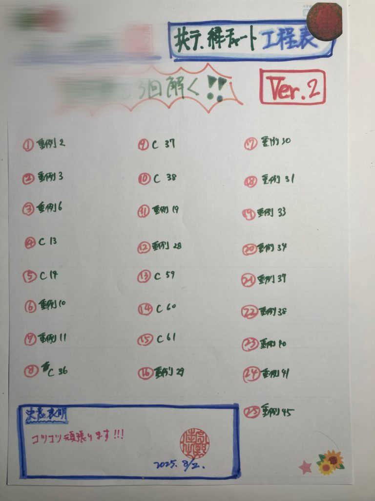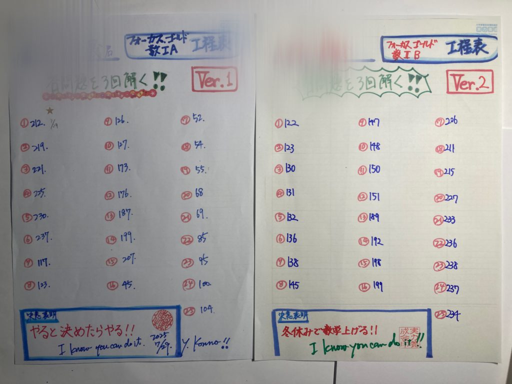 ある高2生の『フォーカスゴールドⅡBC工程表/第2弾』です!!