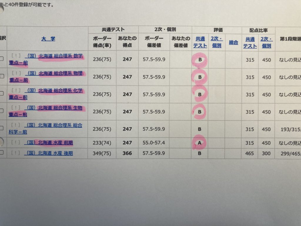 これが今年の共テ『北大総合理系B判定』ドンピシャな点数です