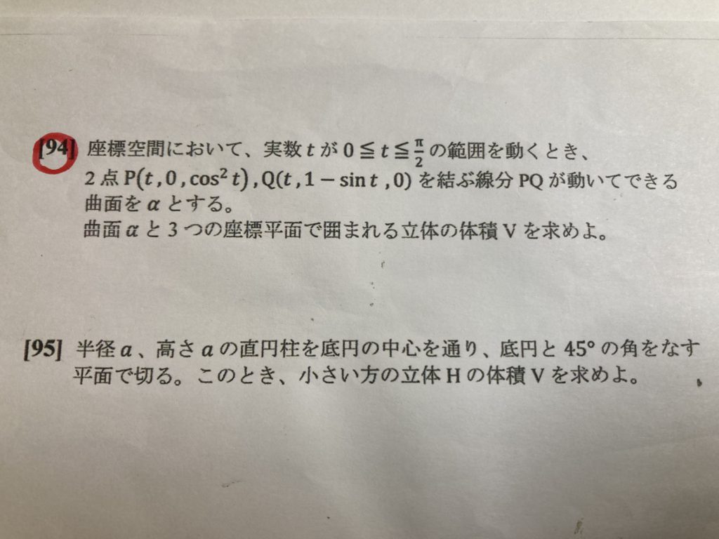 さて、南高では、4月新学期早々『積分応用単元テスト』が実施されます。
