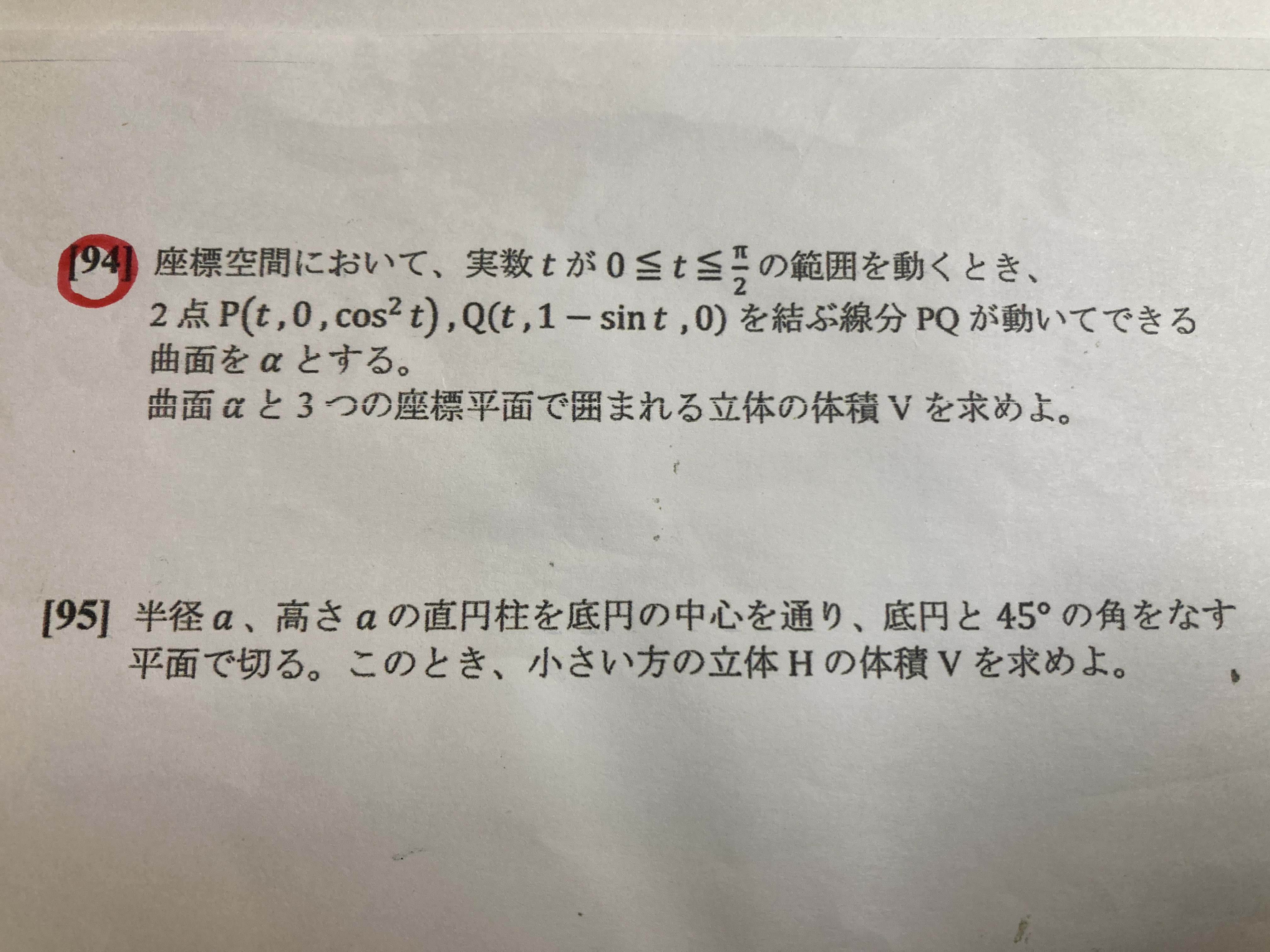 『非回転体の体積』問題です。
