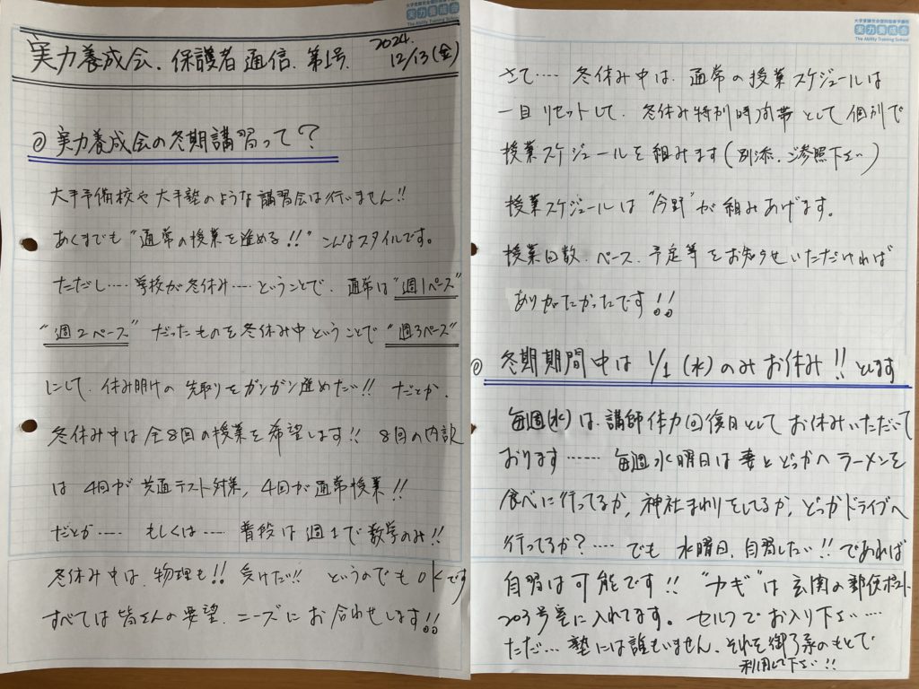 『実力養成会保護者通信』 これが記念すべき≪第1号≫です(笑)