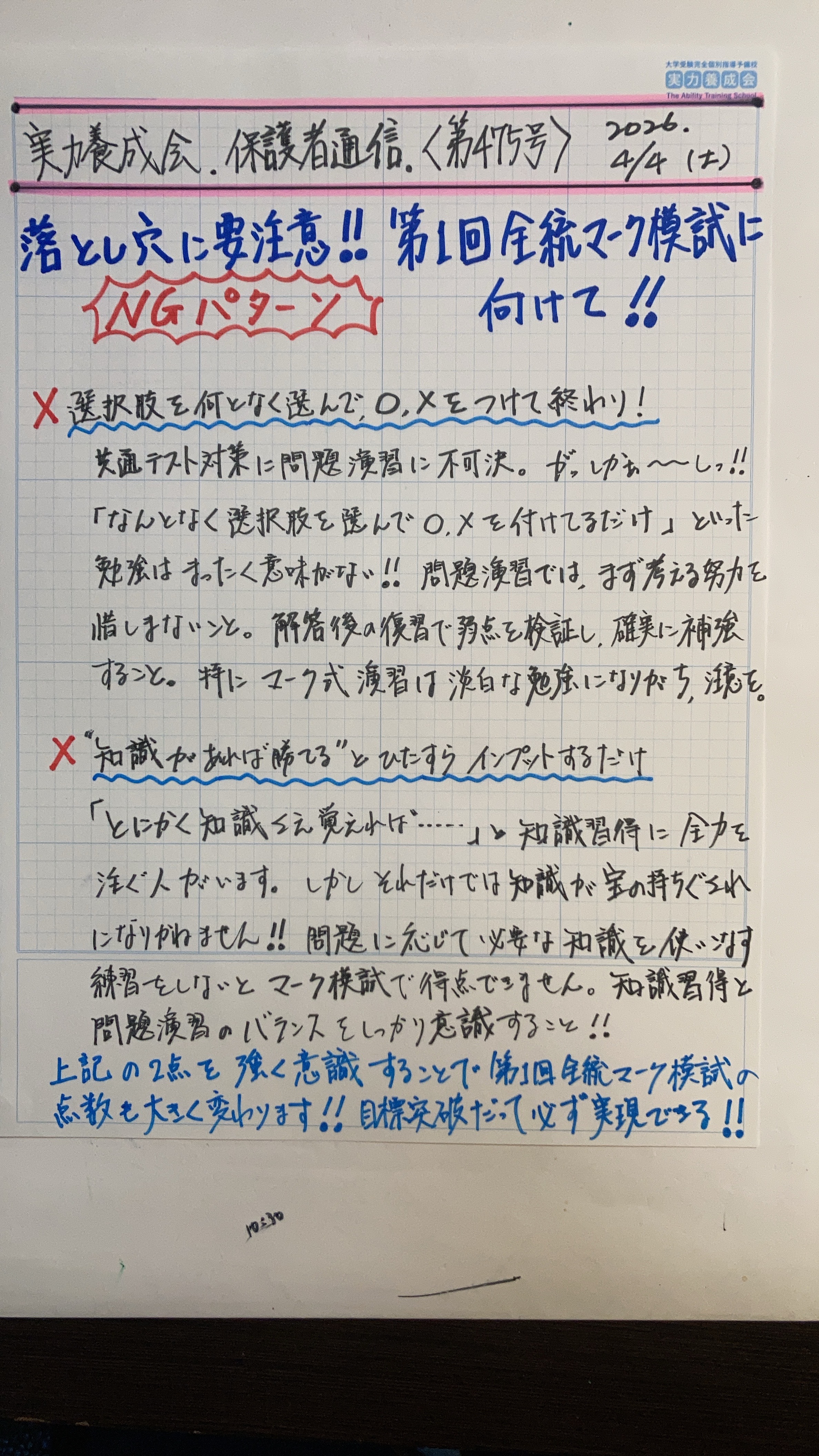 実力養成会通信 第3211号 ”北大院生の就職事情” の巻 - 2026/4/16